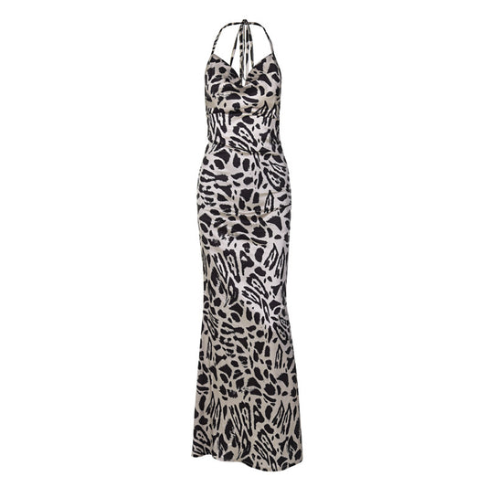 Abito lungo tessuto bandage scollo sulla schiena dettaglio in strass