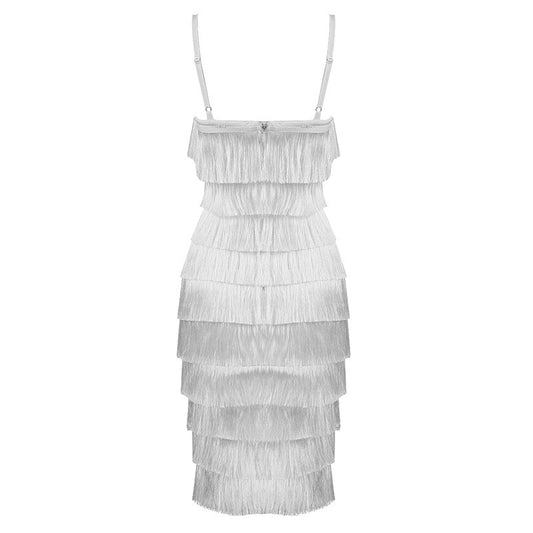 Mini abito tessuto bandage con frangette charleston
