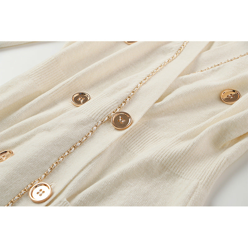 abito doppiopetto elasticizzato in maglia con bottoni dorati