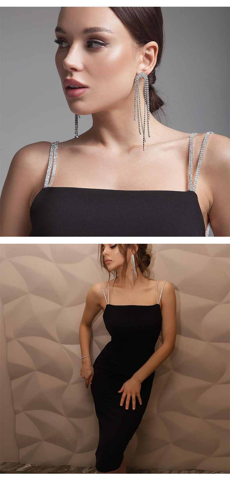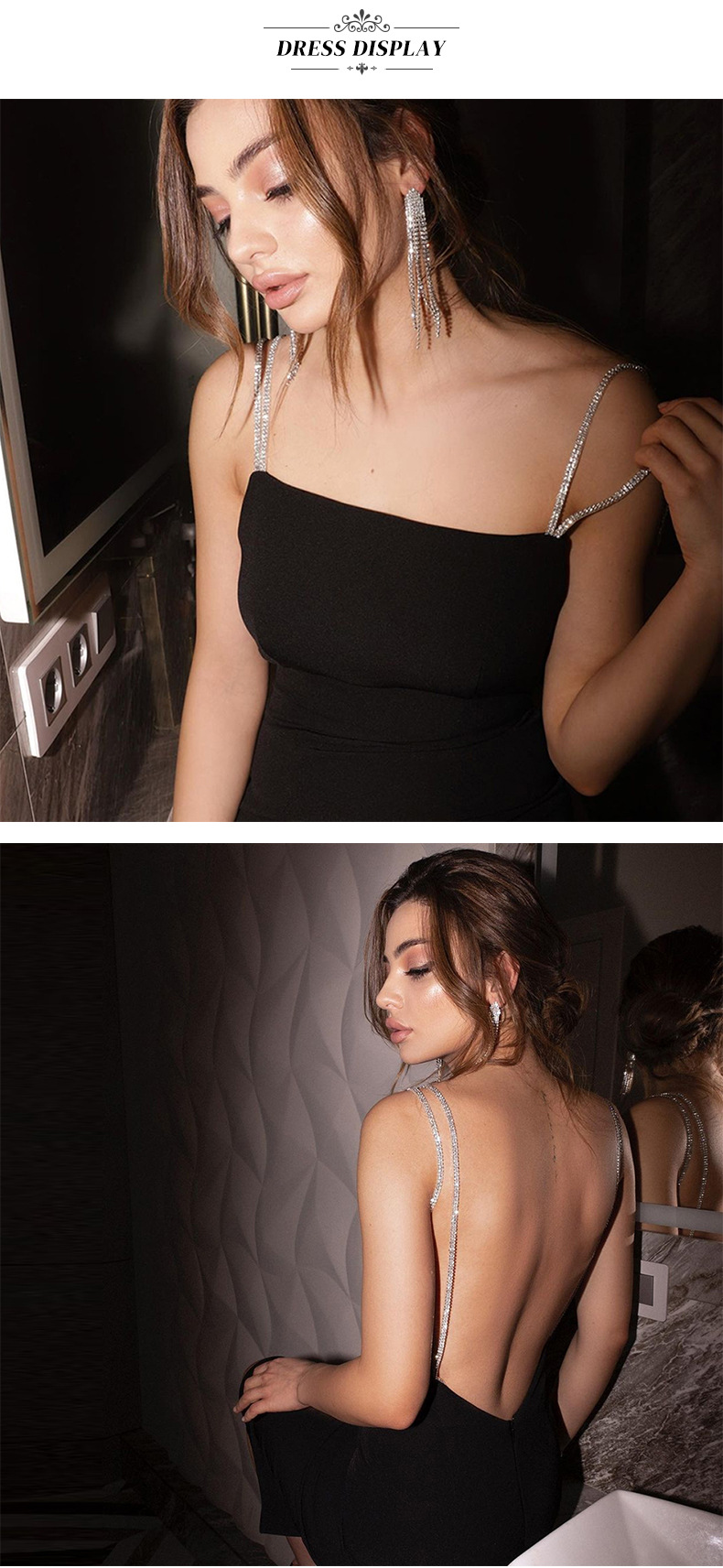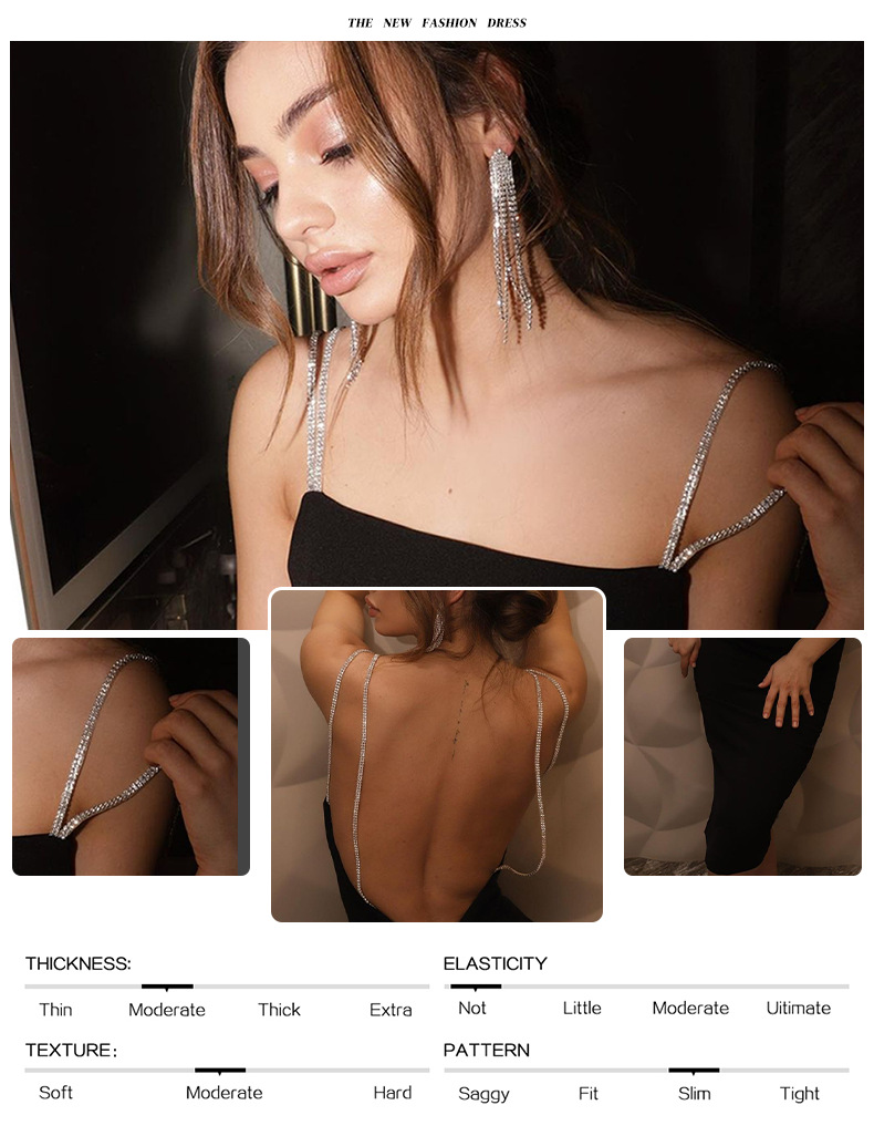 Abito lungo tessuto bandage scollo sulla schiena dettaglio in strass