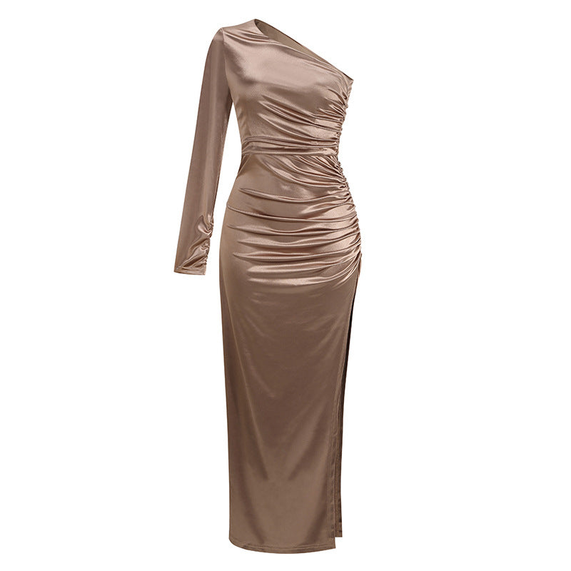 Abito lungo monospalla con spacco laterale