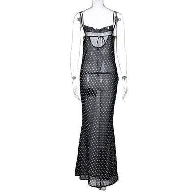 Esalta la tua individualità con l'elegante abito lungo sottoveste in velo a pois! Un classico intramontabile, ripensato in chiave moderna per donarti uno stile unico e sofisticato. Aggiungi un tocco di glamour al tuo look e lasciati ammaliare dalle sue linee sinuose e femminili.