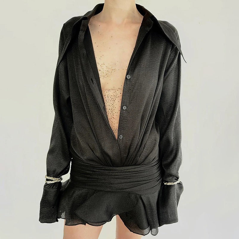 Vesti uno stile deciso e leggero con il nostro abito mini chemisier. Il design deciso ti farà sentire sicura di te, mentre il tessuto leggero ti farà sentire comoda e fresca. Rendilo tuo e aggiungi un tocco di stile al tuo guardaroba!