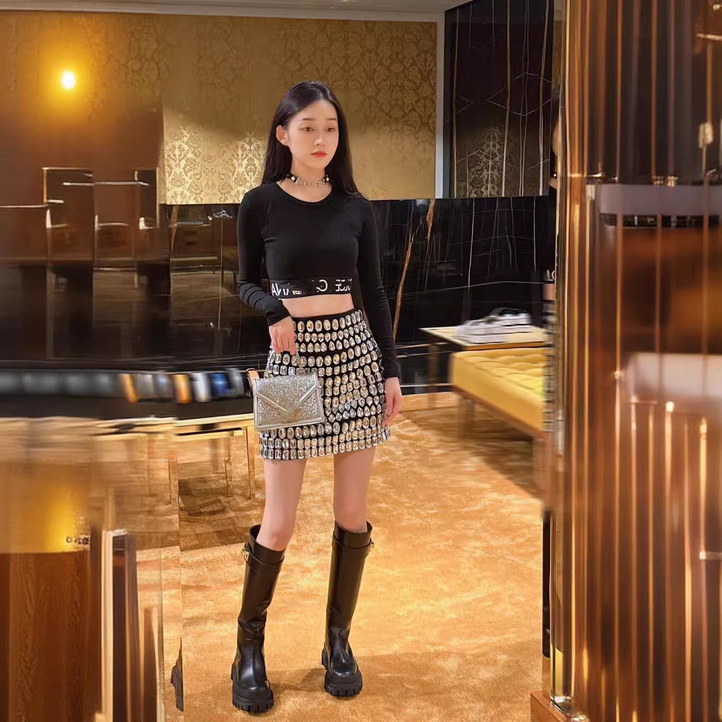 Aggiungi un tocco di luce al tuo guardaroba con la gonna bandage luminosa con pietre applicate. Le pietre brillanti aggiungono un tocco di glamour ad ogni look, mentre il tessuto stretch si adatta perfettamente alle tue curve. Ideale per occasioni speciali o per un look elegante e luminoso ogni giorno!