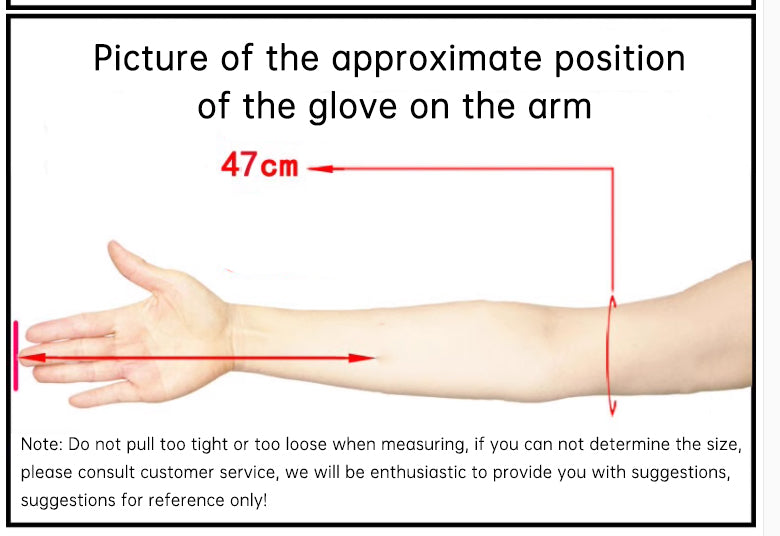 Prova l'eleganza e lo stile di questi guanti lunghi in pelle da 47 cm. Comodi e versatili, si adattano perfettamente a qualsiasi outfit e ti danno un tocco di classe. Non passare inosservato con questi guanti di alta qualità!
