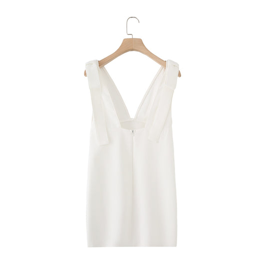 Abito corto scollo a V e fiocco